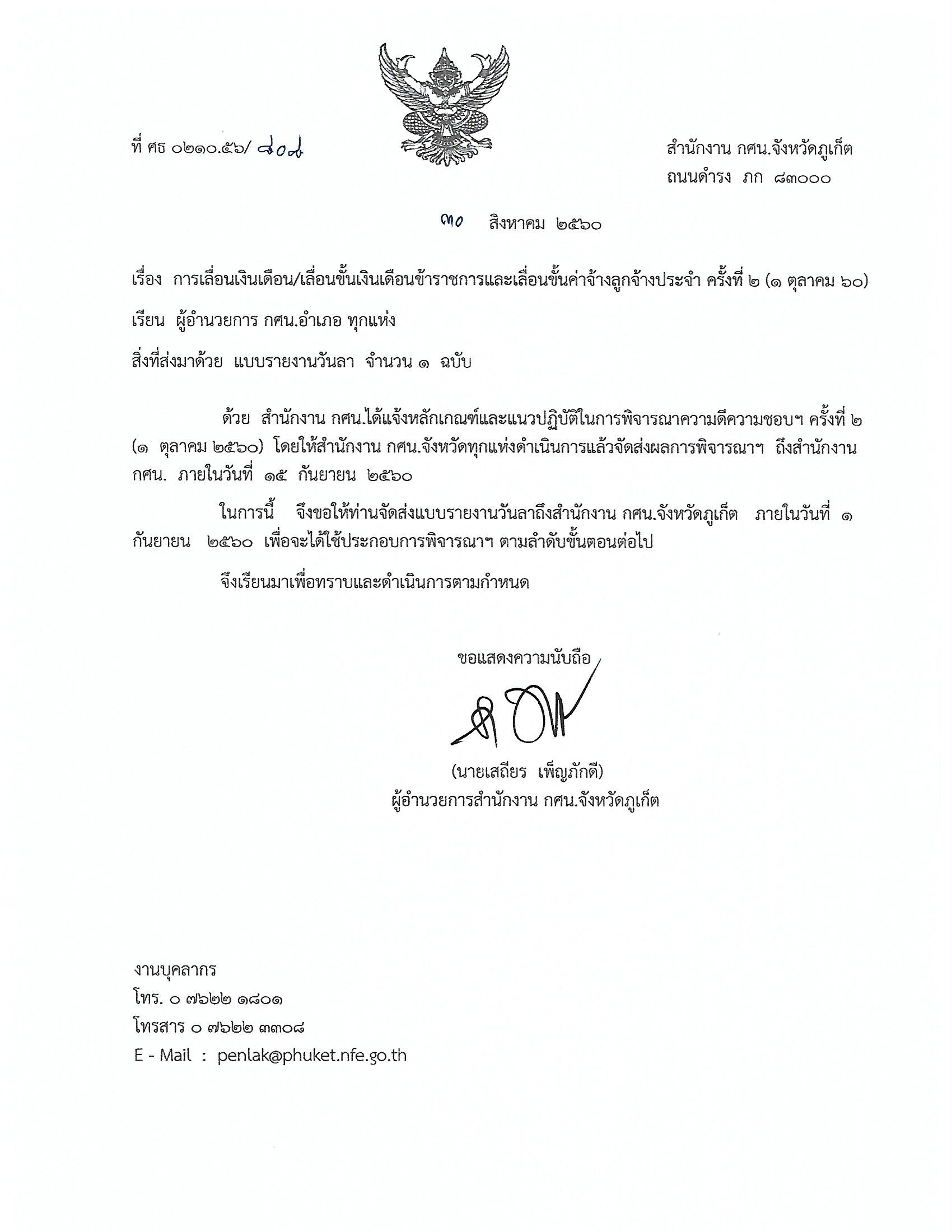 เรื่อง การเลื่อนขั้นเงินเดือน ฯครั้งที่ 2 ปี 2560