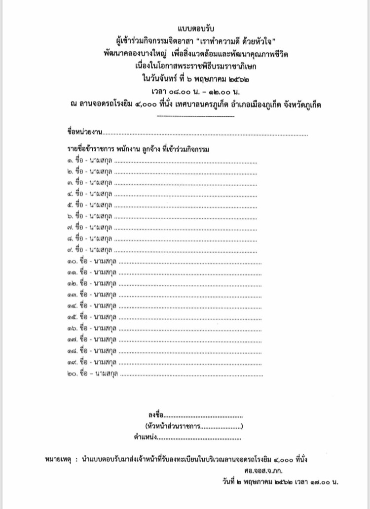 เรื่อง ขอเชิญร่วมกิจกรรมเนื่องในการพระราชพิธีบรมราชาภิเษกจังหวัดภูเก็ต