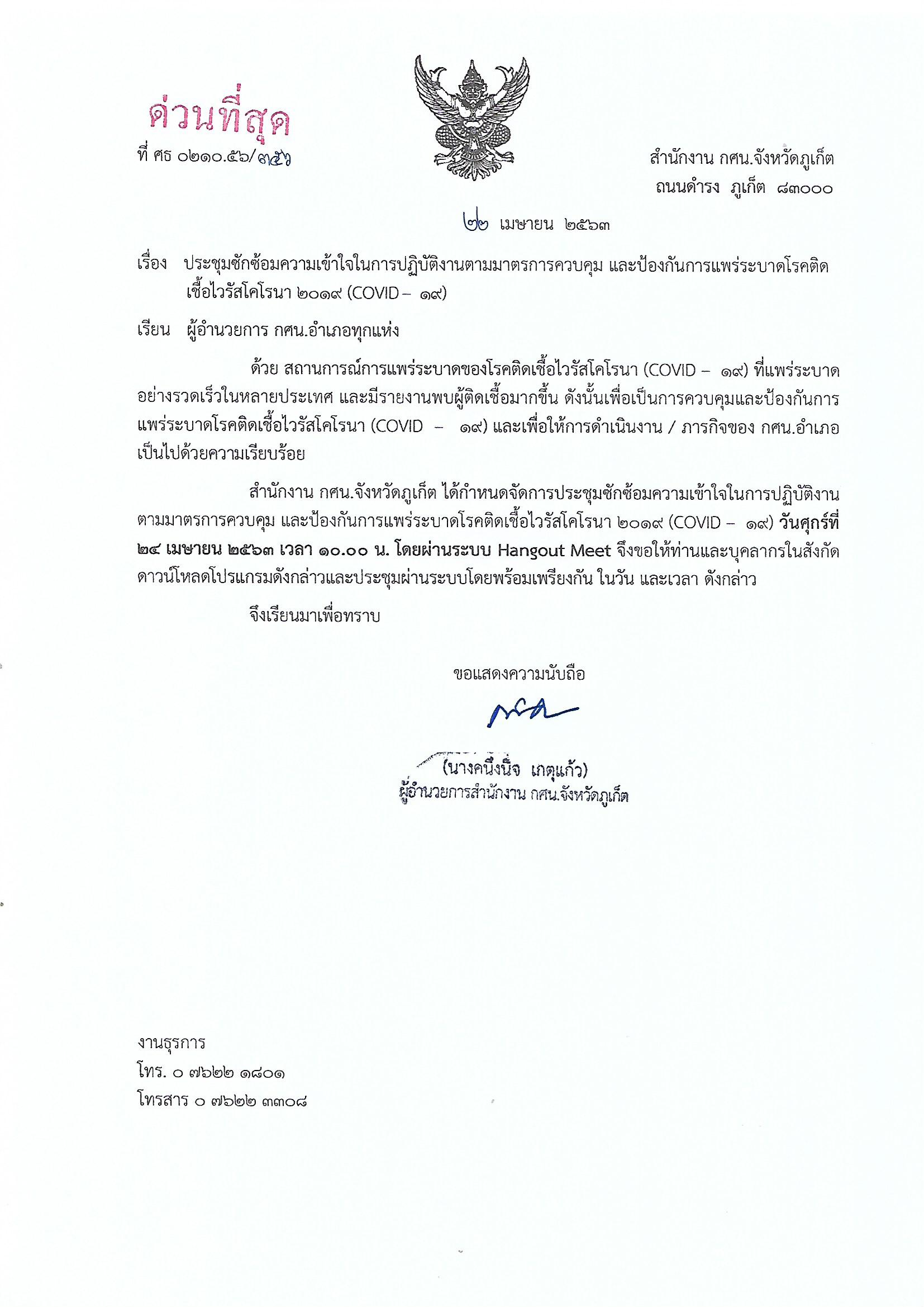 เรื่อง ประชุมซักซ้อมความเข้าใจในการปฏิบัติงานตามมาตรการควบคุม และป้องกันการแพร่ระบาดฯ