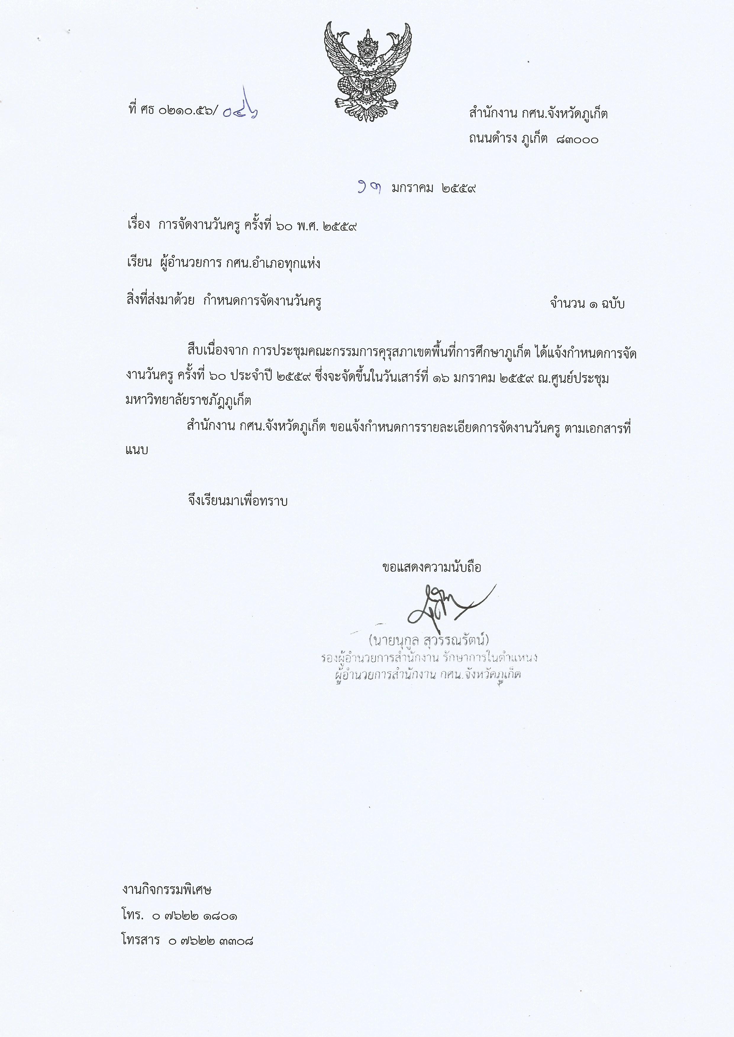 เรื่อง การจัดงานวันครู ครั้งที่ ๖๐ พ.ศ.๒๕๕๙
